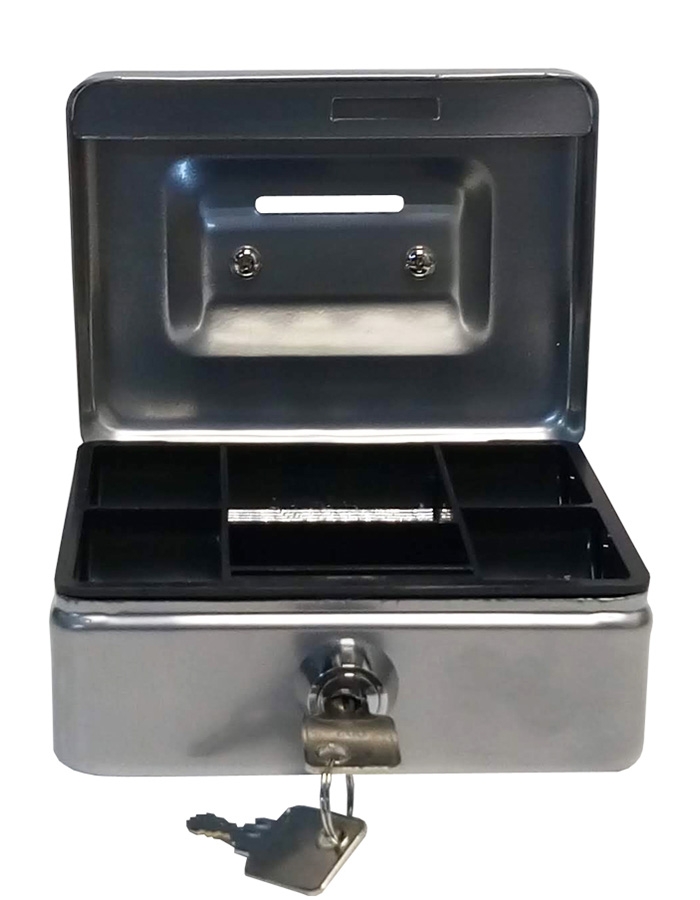 магазине, бутике, офисе. Крепкая металлическая коробка с разделителями станет
