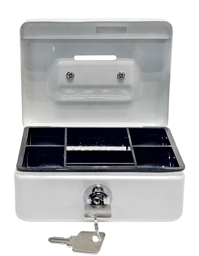 Кешбокс TS 0038 - универсальный и практичный аксесусуар для хранения мелких вещей, небольших сумм денег, важных бумаг в домашних условиях или помещении магазина, офиса. Кешбокс TS 0038 небольшого размера, имеет съемный пластиковый лоток на 6 ячеек. Позволит уберечь ценные вещи от посторонних глаз как в домашних условиях, так и на рабочем месте. Также за счет небольшого веса контейнер удобно использовать для транспортировки ценных вещей.