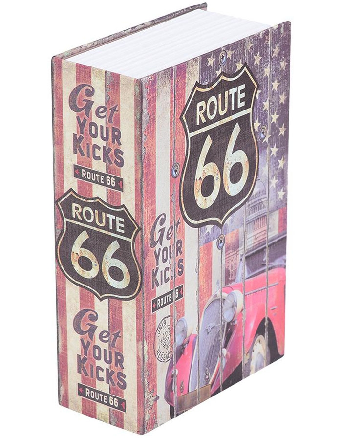 Сейф в форме книги «Route 66» - полезный, стильный и оригинальный подарок. Практическое назначение этого предмета – сейф, в котором можно хранить деньги, важные документы и драгоценности. Он также может быть использован, если Вы решили подарить деньги и сделать это эффектно и со вкусом.