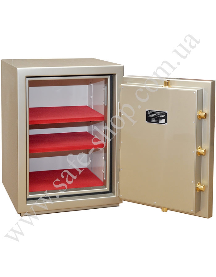 - Оборудован комбинацией ключевого сувальдного замка STUV (Германия) класса VDS1 сейфового типа и электронного кодового замка LA GARD (США) высокой секретности, сертифицированного по классу VDS2. Отпирание сейфа происходит после открытия по очереди обоих замков.