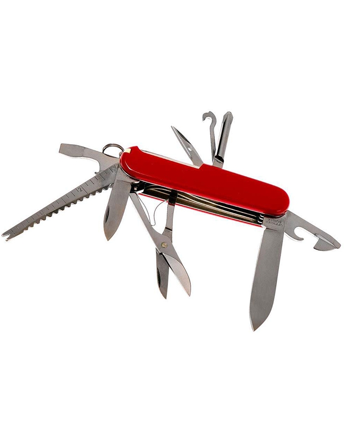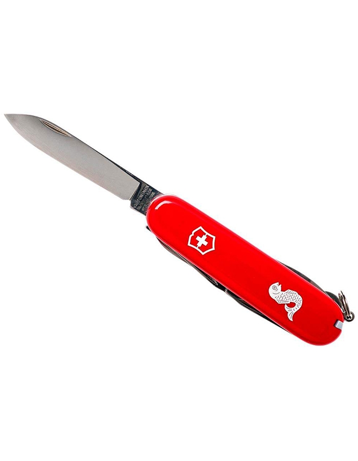 Швейцарский карманный армейский нож Victorinox Fisherman c эмблемой. Лёгкая, компактная и удобная модель с лёгкостью ляжет вам в карман. Кроме того, нож Victorinox весьма практичен и содержит все основные инструменты для повседневной жизни. Нож изготовлен из высококачественной нержавеющей стали. Рукоять выполнена из красного глянцевого нейлона. Размер – 91x26,5x19,5 мм. Вес – 110 г.
