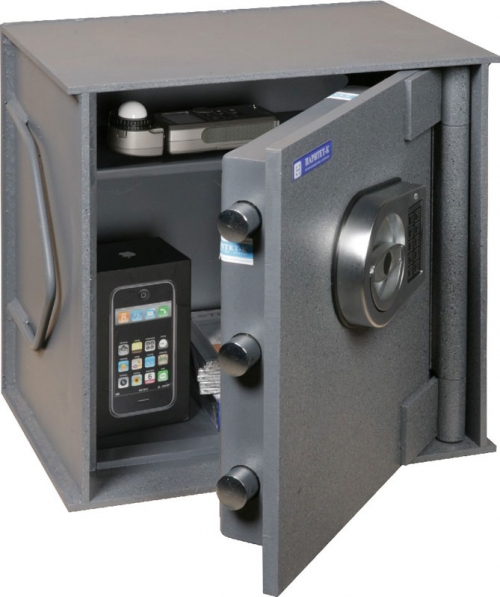 - Усиленная противовзломная конструкция сейфа (толщина лицевой панели 10 мм, толщина стальных листов корпуса 6 мм) в комбинации с надежным замком обеспечивают повышенную устойчивость сейфа к взлому.