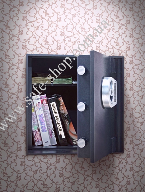 - Оборудован электронным кодовым замком M-LOCKS (Нидерланды) высокой секретности, сертифицированным на соответствие международным стандартам (класс VDS 2, class B).Замок питается от батареи типа „крона” (9 В), которая находится в середине замка сейфа. Время ее функционирования 1-1,5 года. Если батарея разряжается ниже допустимого уровня - то при каждом открытии замка будет звучать длительный звуковой сигнал предупреждения. Батарею следует заменить, предварительно сняв защитную крышку в нижней части замка.Электронный кодовый замок разрешает устанавливать 6 цифр в кодовую комбинацию. После 4-х попыток ввода неверного кода замок сейфа автоматически блокируется на 5 минут.
